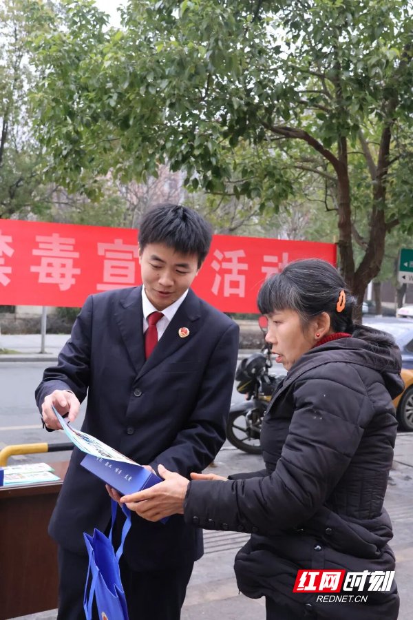 红网时刻新闻2月4日怀化讯(通讯员 向沭霖)为进一步增强全民禁毒意识,提升群众识毒、防毒、拒毒能力,营造全民参与禁毒斗争的良好社会氛围,2月4日,洪江市检察院开展以“检民同心,共筑禁毒防火墙”为主题的禁毒宣传活动。