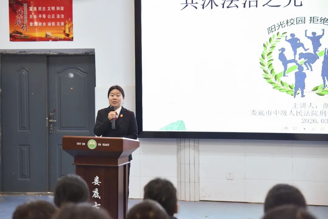 为了守护“少年的你”,3月18日,娄底市中级人民法院组织干警走进娄底市第七小学,为该校学生送上法治教育课。