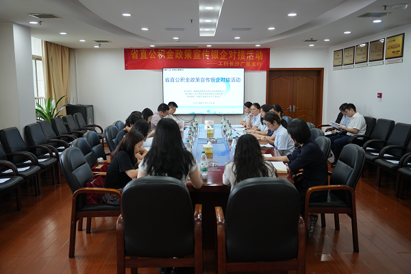 2024年8月29日,省直公积金中心联合中国工商银行长沙广厦支行,在长沙市隆平高科技园企业联合会为园区十几家企业开展省直公积金政策宣传活动。
