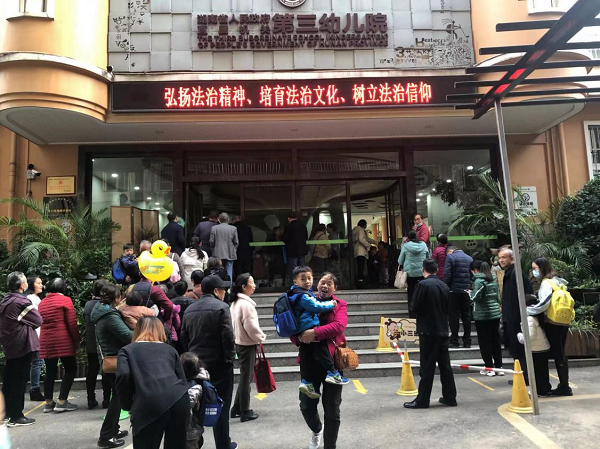 2021年12月,省三幼在教学楼设置宪法宣传电子标语。