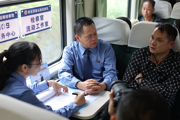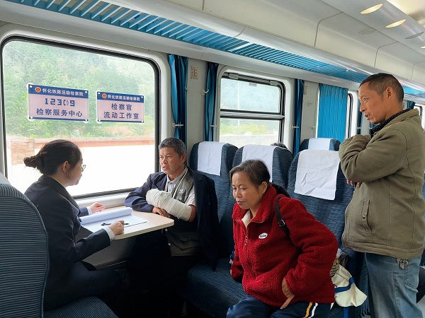 2023年以来,怀化铁路运输检察院在公益“慢火车”上5号车厢55座位开设“检察官流动工作室”,免费为乘客提供法律咨询、进行普法宣传教育。今年又将“12309检察服务中心”搬上慢火车,提供控告申诉、受理群众信访等。截止目前,在公益“慢火车”上开展相关活动共33次,提供有关劳务纠纷、欠薪欠债、婚姻嫁娶、邻里矛盾等法律咨询200余次,回访群众38人次,接收公益诉讼案件线索2件,发放防电信诈骗、禁毒宣传等各类法治贺卡8000余份。