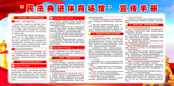 2025年5月,第五个“民法典宣传月”,省体育局组织“民法典进体育场馆”活动,此图为下发的普法宣传手册。